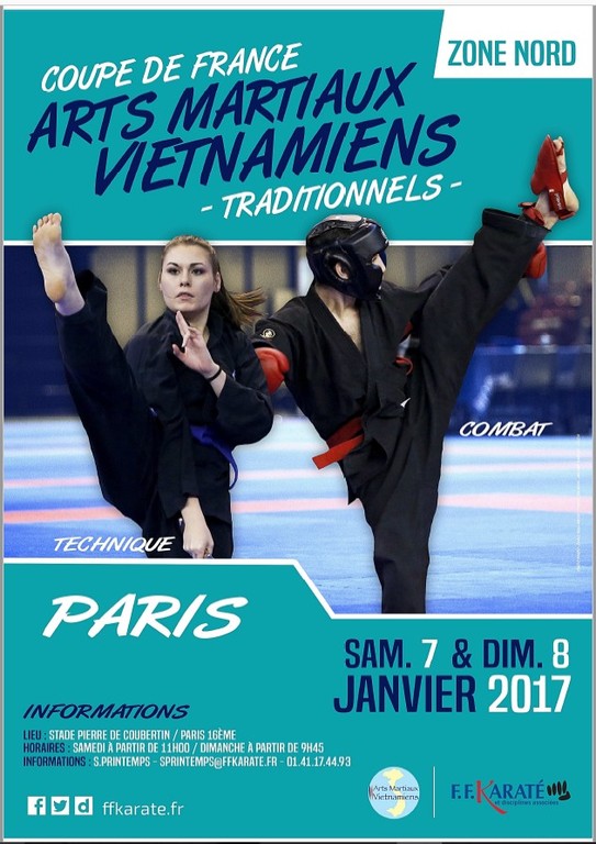 Coupe de France zone nord des Arts Martiaux Vietnamiens Traditionnels qui se déroulera le samedi 07 et 08 Janvier 2017.